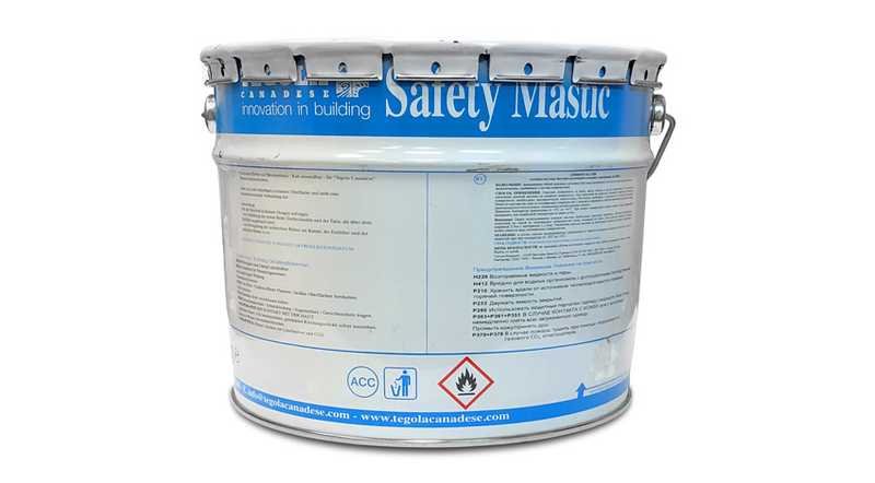 Битумно-полимерная мастика холодного применения для дополнительной фиксации лепестков черепицы и герметизации примыканий, ендов и нахлестов гидроизоляционных мембран (подкладочных ковров). Мастика битумная СЕЙФИТИ МАСТИК представляет однородную клеевую массу, состоящую из битума, бутадиен-стирольного термопласта, наполнителя, растворителя и технологических добавок. Обеспечивает надежное соединение битумной черепицы к различным основаниям: кирпичной кладке, бетону, металлу, дереву и др. По составу мастика СЕЙФИТИ МАСТИК полностью соответствует составу гибкой битумной черепицы и не вызывает деформации.