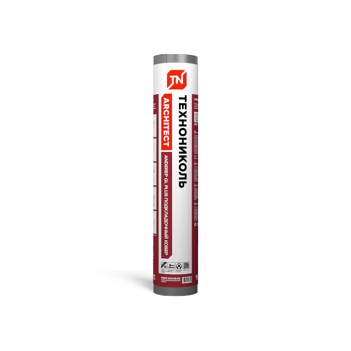 Битумно-полимерный подкладочный ковер механической фиксации с клеевыми монтажными полосами с основой из стеклохолста для скатных кровель с финишным покрытием из гибкой битумной черепицы.