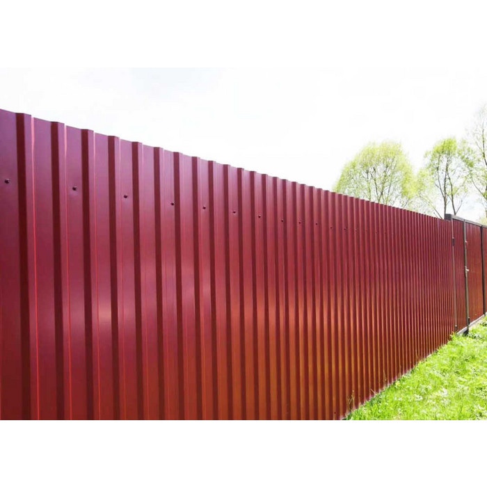 Профилированный лист МП-20x1100-B (ПЭ-01-3005-0,45) широко применяется в Сиверском для обустройства забора. Представляет собой металлический оцинкованный лист с покрытием. Толщина стальной основы с цинковым и декоративно-защитным покрытием — 0.45 мм.Проходя процедуру холодного проката, сталь принимает волнообразный вид. Такая форма придает профилю несущую способность.