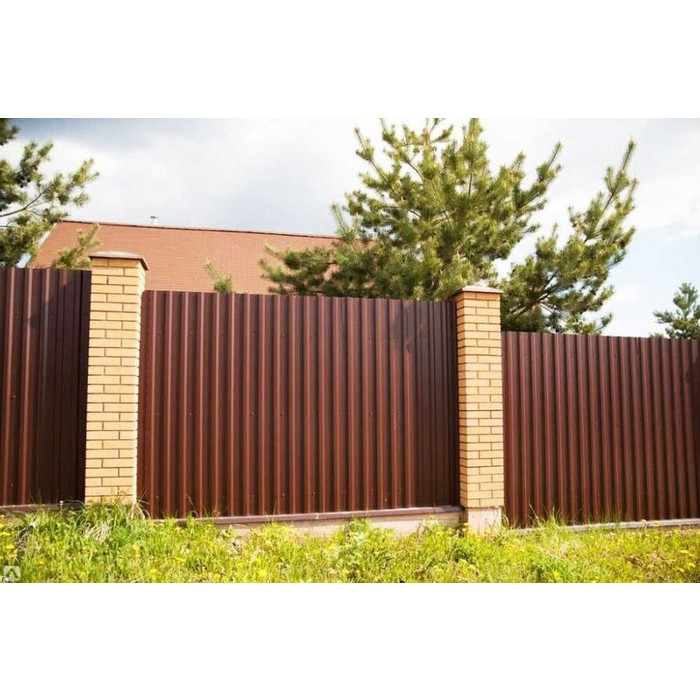 Профилированный лист МП-20x1100-B (PURETAN-20-8017-0,5) — популярный материал в Сиверском для монтажа забора. Изначально он представляет собой лист оцинкованной стали с покрытием. Общая толщина металла с цинковым и защитно-декоративным слоем составляет 0.5 мм.Проходя процедуру холодного проката, металл принимает волнообразный вид. Жёсткость такого листа на порядок выше плоского.