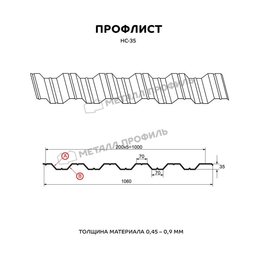 Универсальный и выгодный материал с симметричным профилем. Маркировка НС значит, что профилированный лист одновременно и «несущий», и «стеновой». Он пользуется спросом как для гражданского строительства, так и при возведении крупных объектов. Из профилированного листа с глубиной волны в 35 мм получаются строения совершенно разного назначения: быстровозводимые сооружения ( павильоны, навесы ), обустройство кровли, ограждения частных и городских территорий, каркасные здания ( цеха, склады, торговые центры ). Хорошую способность выдерживать нагрузки НС-35 обеспечивают добавочные желобки, которые расположены на лицевой и внутренней сторонах профлиста. Полезная ширина профнастила НС-35 составляет 1000 мм при номинальной ширине 1060 мм, получается, что при монтаже этого профиля в боковой замок уйдёт 60 мм. Толщина стальной заготовки имеет диапазон от 0,5 до 0,9 мм – это обуславливает не только механическую прочность стройматериала, но и его тяжесть. Полимерный слой из ассортимента Компани Металл Профиль придаст материалу улучшенную стойкость к ржавению и УФ-излучению.